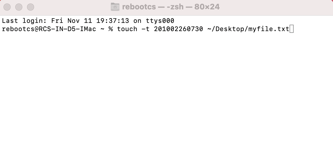 touch -t 201002260730 ~/Desktop/myfile.txt