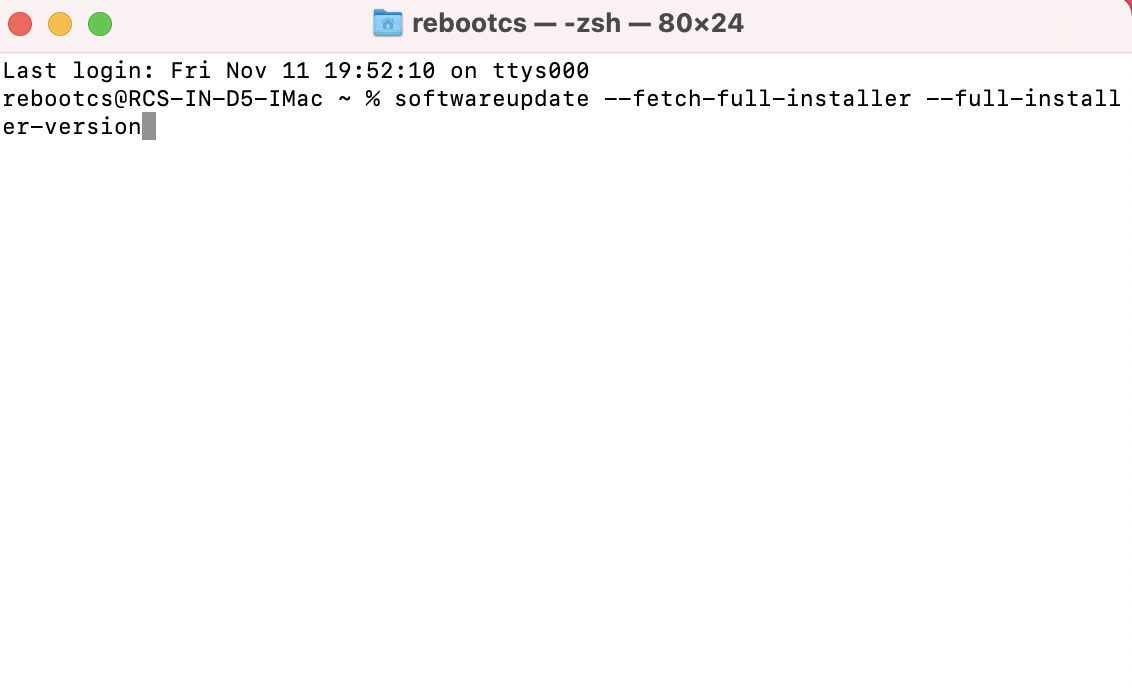 – this command will download the newest version of Monterey.softwareupdate --fetch-full-installer --full-installer-version