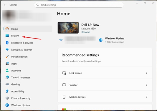 Click on System on the left side.