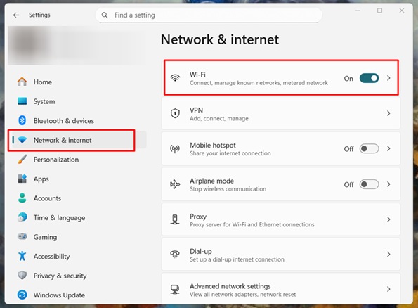 Click Network & Internet, then choose Wi-Fi.