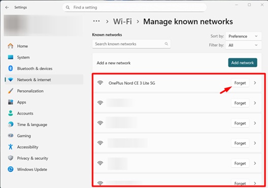 4. Forget the Wi-Fi Network: