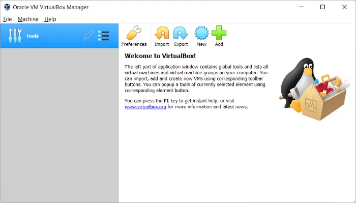 1. Install VirtualBox on your Windows PC by following the instructions in the installation wizard. Click “New” to create your new virtual machine.