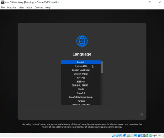 7. Finally, reopen VirtualBox, click on the “Start” arrow to launch your virtual machine, and then follow the instructions to install macOS.