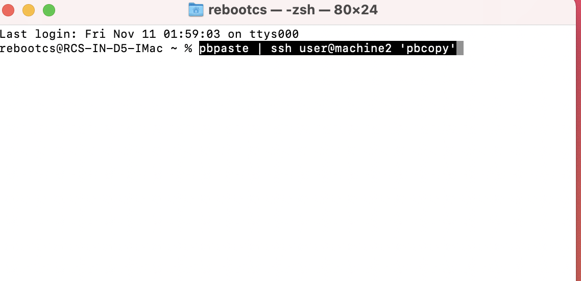 This command will send the contents of the clipboard from your machine to the other machine.