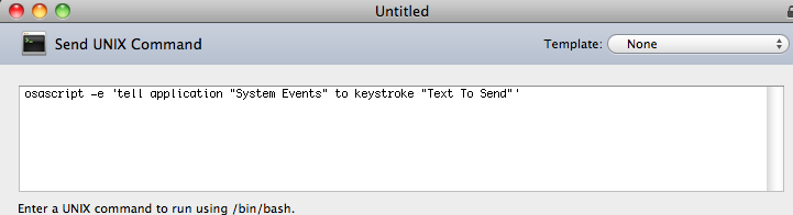 Type in the following, replacing the quoted text after “keystroke”. In this example this will type “Text To Send” on the destination computer(s).