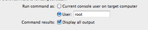 If no one is logged in to the computer you will need to modify the “Run Command as:” option. You will have to choose a User, you can type in the local administrator to the computer or “root”.