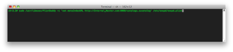 sudo /usr/libexec/PlistBuddy -c 'set metaIndexURL http://Internal_Master.com:8088/catalogs.sucatalog' /etc/swupd/swupd.plist