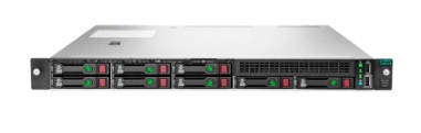 HPE ProLiant DL160 Gen10 rack server with one Intel® Xeon® 4210R processor, 16 GB memory, eight small form factor drive bays and a 500W power supply